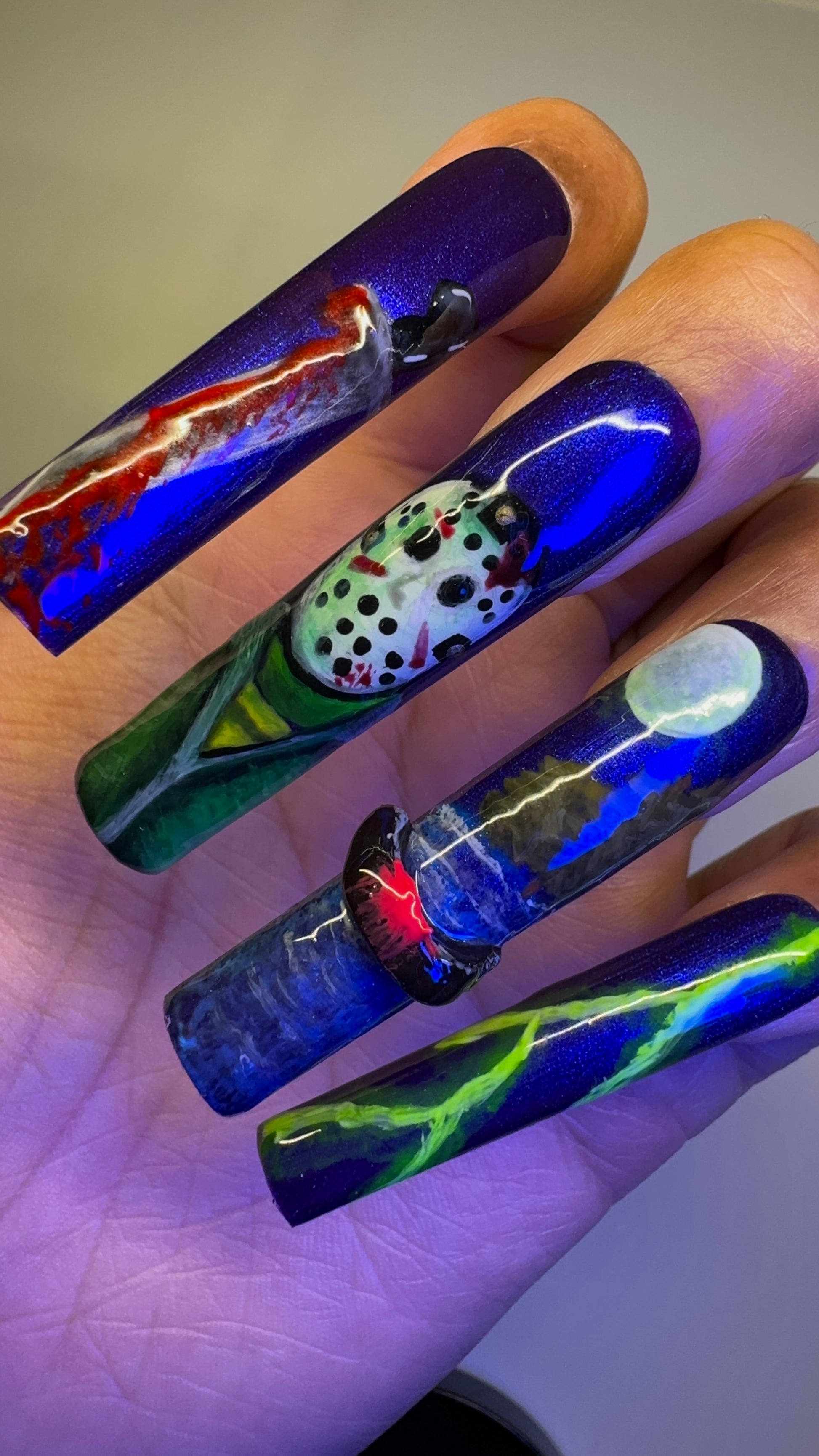 Experience our mysterious and enchanting "Blue Hour" gel polish. Add a mystical touch to your nails with this deep midnight purpleish-blue shade with an electric blue finish.