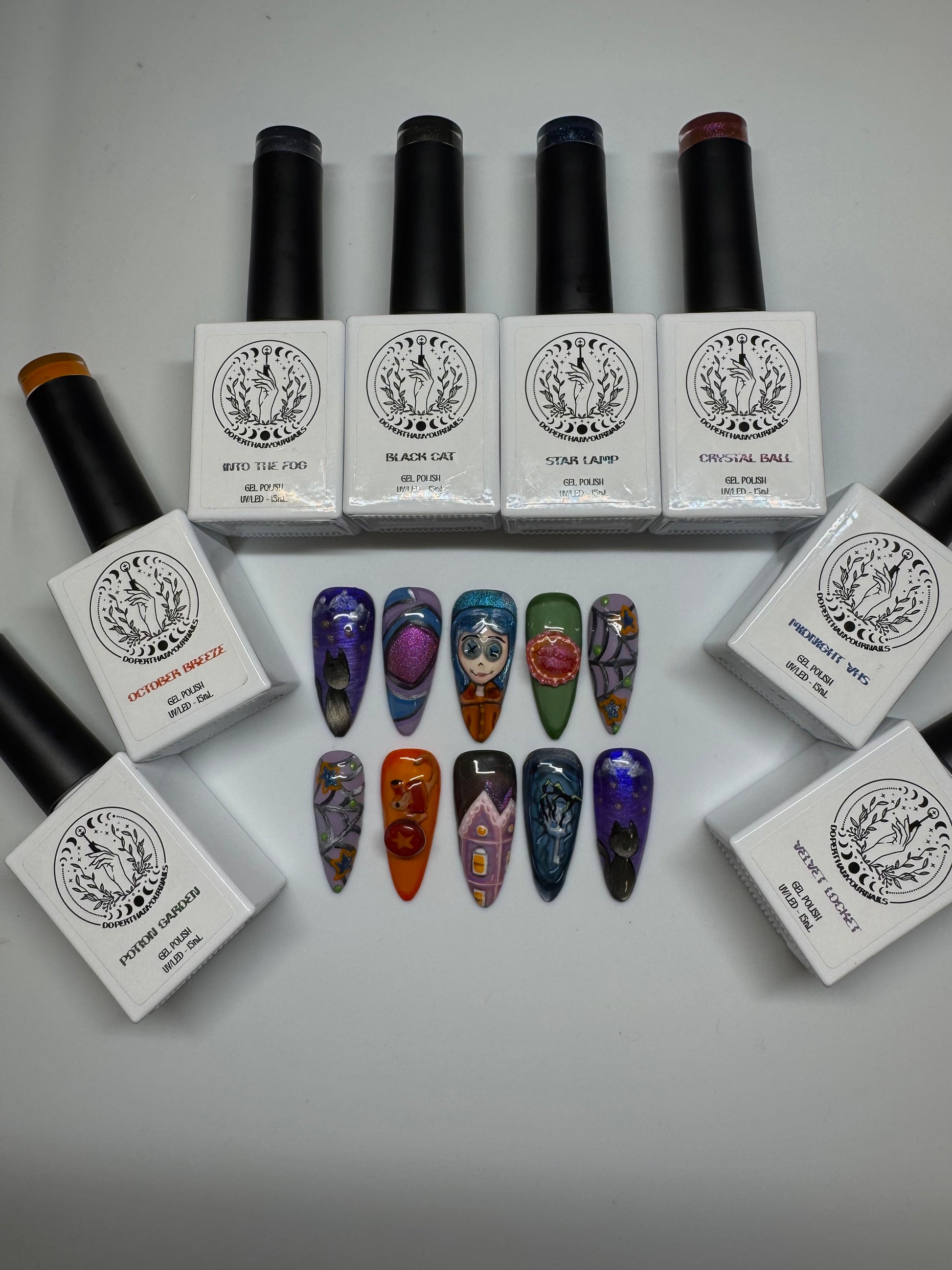 Experience our fall launch - A Whimsy Halloween🎃🐈⬛🔮🌙 This 8 piece gel polish collection brings the dreamy nostalgia of the whimsigoth aesthetic & halloween magic to life 🎃🪄📼